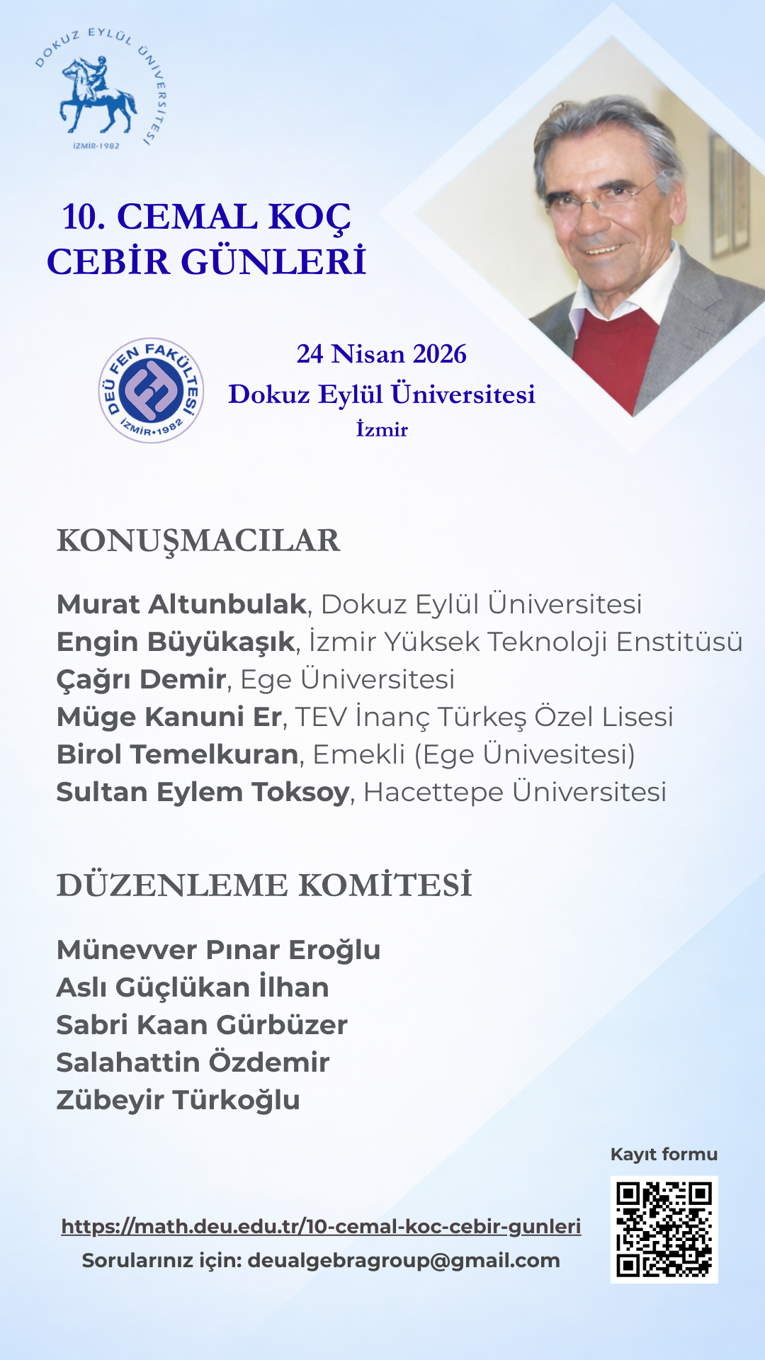 Bu yıl onuncusunu gerçekleştireceğimiz Cemal Koç Cebir Günleri’nde siz değerli katılımcıları aramızda görmekten büyük bir mutluluk ve onur duyacağız. Katılımınızın etkinliğimize bilimsel zenginlik katacağına inanıyoruz. Sizleri saygıyla davet ediyoruz.